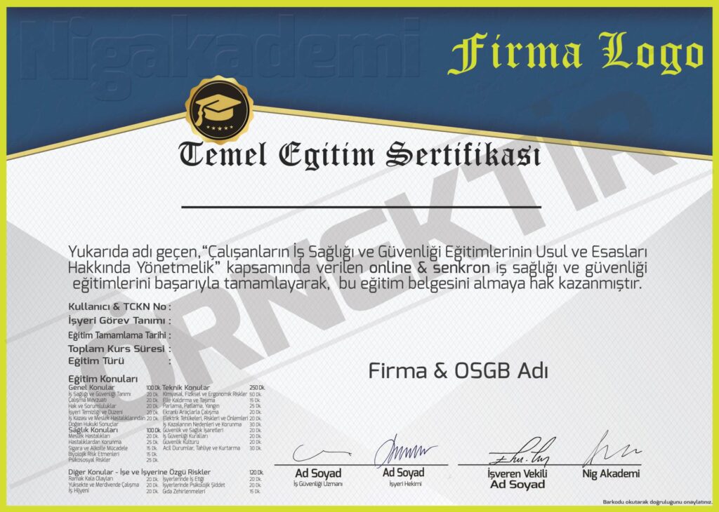 Az tehlikeli sınıflarda çalışanlar için hazırlanmış, temel iş sağlığı ve güvenliği eğitimi, en az 8 (sekiz) saatlik temel bilgileri içeren, zorunlu iş sağlığı ve güvenliği eğitimlerini kapsar.